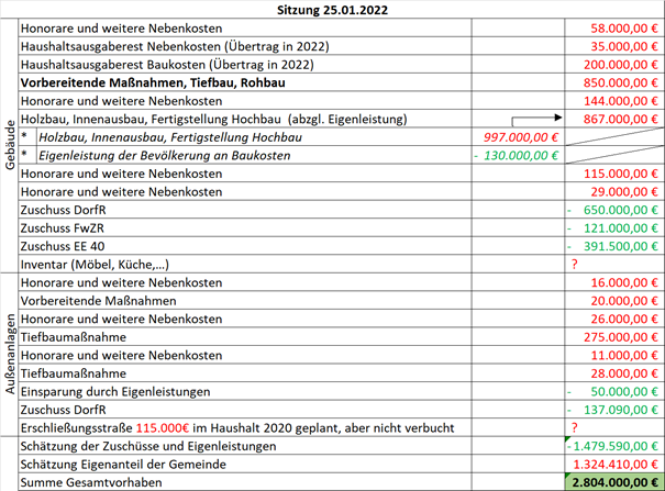 Zur Gemeinderatssitzung am 25.01.2022 wurde den Räten ein Zahlenwerk an die Hand gegeben das in Teilen bereits aus den Diskussionen der Sitzung vom Mai 2021 bekannt war. Schon damals standen bei uns die hohen Kosten in der Kritik. Neben all den Pflichtaufgaben der nahen Zukunft wäre es nur fair ein kostengünstiges Gemeinschaftshaus für die südlichen Ortsteile zu errichten, schließlich steht bereits das nächste Haus für Buchhausen auf der politischen Agenda des Bürgermeisters.